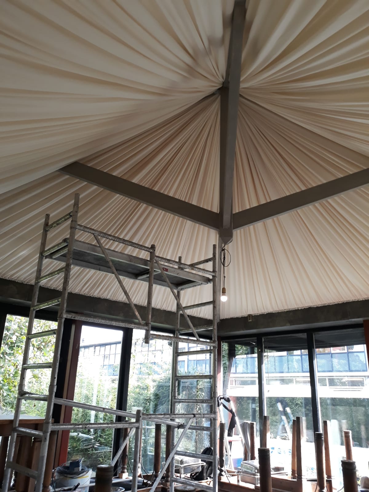 Brandwerend kaasdoek is de oplossing voor plafond-verfraaiing in huis of tijdens een evenement. Je kunt de stof zowel los bestellen als inclusief bevestiging ter plaatse, het brandwerende kaasdoek is al verkrijgbaar vanaf 1 strekkende meter.
